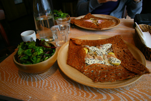 It’s a Breton crêperie where they use buckwheat in the savory crêpes instead of white flour. They are so good, beyond your imagination. Eggs, ham, scallops, cheese, asparagus, duck breast and many other super fresh ingredients.